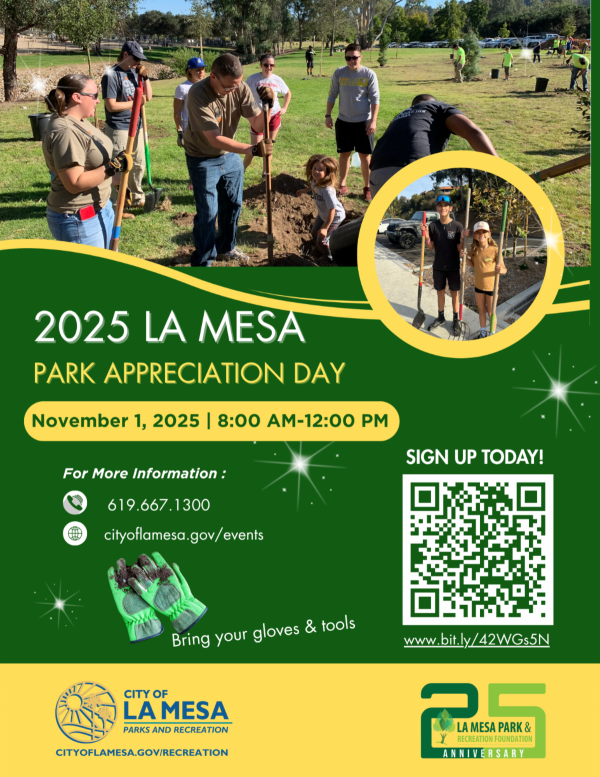 City of La Mesa 2025 PARK APPRECIATION DAY Saturday, November 1, 2025 8 AM - 12 PM |